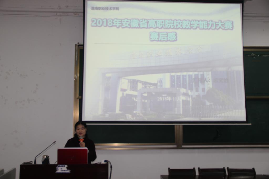 本场示范课安排了三个部分,分别由工程管理系孟文怡、基础部赵敏、经济管理系徐茹三位老师依次进行展示。承担示范课的教师们都积极准备,全身心投入,现场精彩纷呈。孟文怡老师为大家详细介绍了参赛的注意事项,包括团队组建、信息化手段运用、教学目标制定等方面,为我们播放了参赛的精彩视频,并对其作品进行了总结和剖析;赵敏老师解读了“教学大赛的改革和创新研讨会”的内容,分享了她自己参加教学设计大赛的感悟——返璞归真,从心出发;徐茹老师为我们播放了她参赛的精彩视频,并从赛前思考、课堂实施、课后反思三个方面与大家进行了分享。
