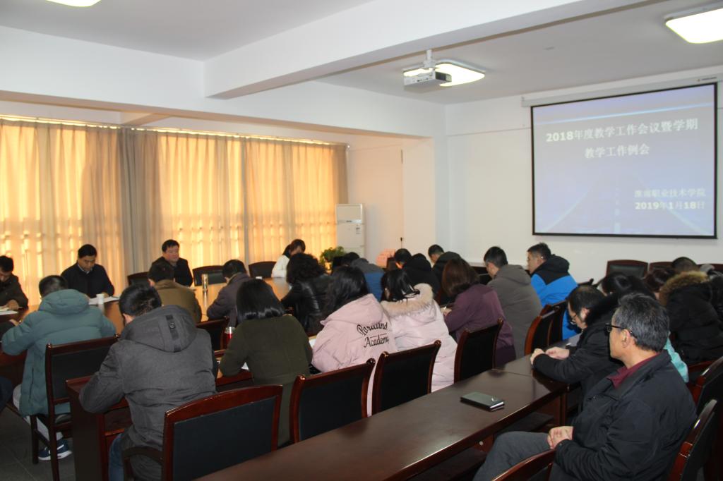 教务处负责人从专业建设方面、课程建设方面、教师能力培养方面、实习实训基地建设方面、教学监控等方面回顾了2018年度的教育教学工作,并分析了目前存在的问题和下一步努力的方向,并对各院系、部上报的例会议题进行了回复。教务处相关人员通报了近期的教学情况,并对接下来的相关教学工作进行了安排。