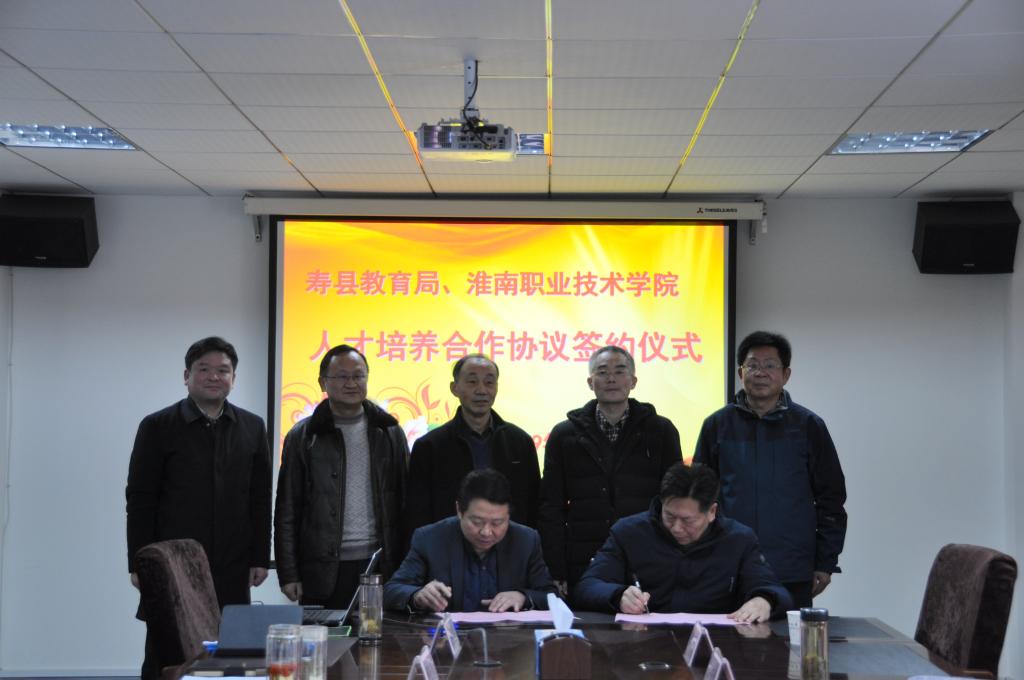 2月15日上午,我校与寿县教育局签订职业技能人才培养合作协议。寿县副县长邬平川,教育局局长夏承开、副局长汪守贵;学校党委书记吴新社,校长周国良,党委副书记、纪委书记、工会主席张友超,副校长朱云辉出席了签字仪式。