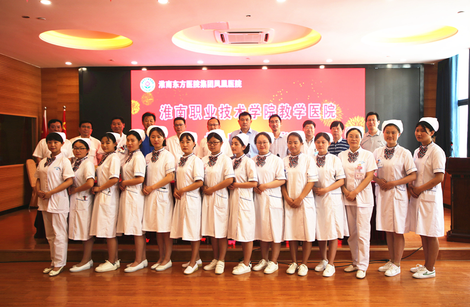 凤凰医院党委书记王智致欢迎词,院长刘春生发表祝愿词。王书记指出,淮南职业技术学院与淮南东方医院集团血脉相连,淮南职业技术学院选择凤凰医院作为教学医院,是对凤凰医院信任和嘱托。希望带教老师能认真履行带教职责,实习学生能尊师重教学到真本领。刘院长指出,校院联手,目的是将医疗教学与临床实践紧密结合起来,实现优势互补、共同发展,是医疗卫生事业全面、协调、可持续发展的一个重要方向,也是医疗单位拓展发展空间、提升发展水平、增强发展后劲的重要举措。相信通过双方的精诚合作共同努力,定会创造出校、院互惠共赢共同发展的美好局面。