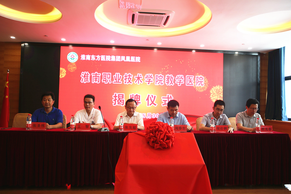 5月30日上午,淮南职业技术学院教学医院揭牌仪式,在淮南东方医院集团凤凰医院四楼学术报告厅隆重举行。校党委副书记、纪委书记、工会主席张友超,凤凰医院院长刘春生、党委书记王智等领导,和该院200多位医护人员共同见证了揭牌仪式,揭牌仪式由凤凰医院常务副院长钱志刚主持。医学院党政领导陪同出席。
