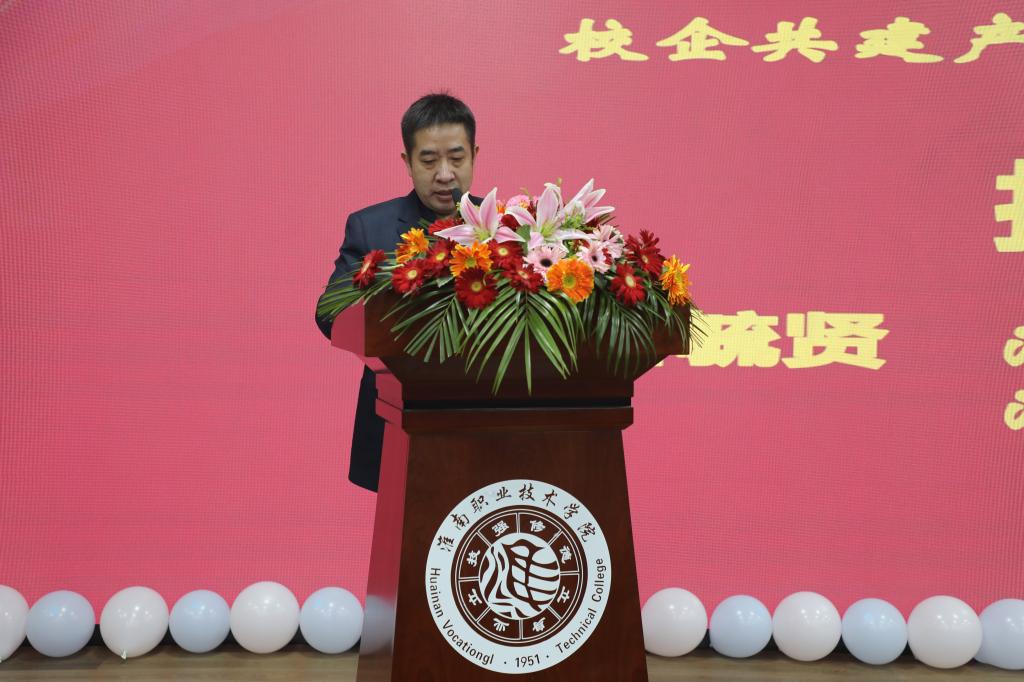 管毓贤总经理在致辞中充分肯定学校70年来的办学成就,感谢学校多年来提供的人才支撑,并且对产业学院和实训基地运营提出了更高的期望。他表示,海尔与淮南职业技术学院合作双方共同实践探索产业学院、建设综合性培训基地,都是为了实现学生“双元制”、“双身份”培养模式,让学生毕业既就业,并且在学校学习的过程中能够具备创新创业的双创精神和兢兢业业,精益求精的大国工匠素质,提高学生的动手实践能力,增强他们参与社会竞争的能力。产业学院是校企提高人才培养质量的重要举措,这对企业来说具有深远的意义。