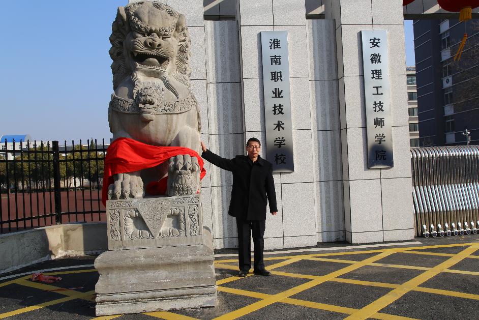 淮南职业技术学院党委书记、校长吴新社,副校长王德恩共同为学校新校门揭牌。
