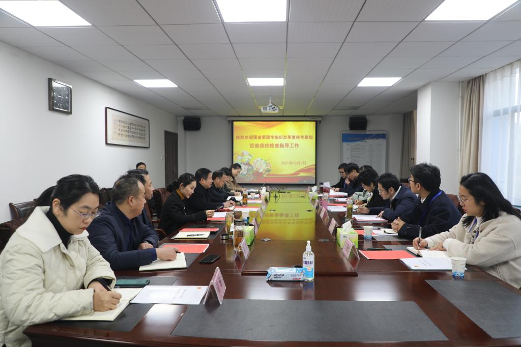 12月7日下午,团省委二级巡视员、省少工委主任李丹云一行来我校评估调研共青团和学生会组织改革工作情况。校党委书记、校长吴新社,党委副书记、纪委书记、工会主席张友超热情接待来宾。党委工作部、综合办公室、学生部等部门负责人,校团委全体成员,二级学院团总支书记代表,校学生会主席团成员、部门负责人及普通学生代表参加会议,会议由校长吴新社主持。