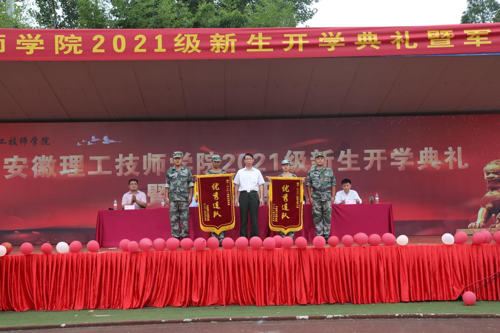 9月9日下午,技师学院2021级新生开学典礼暨军训汇报表演在东校区田径场隆重举行。淮南职业技术学院副校长、技师学院直属党支部书记王德恩出席典礼并致词。