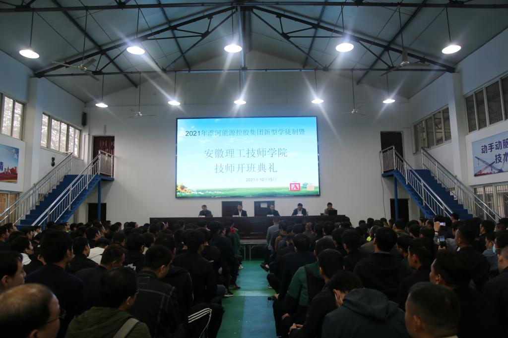 10月15日上午,技师学院在九龙岗校区隆重举行2021年淮河能源控股集团新型学徒制暨技师开班典礼。淮河能源集团员工保障中心人才服务部部长李岩,淮南职业技术学院副校长、技师学院直属党支部书记王德恩出席典礼。