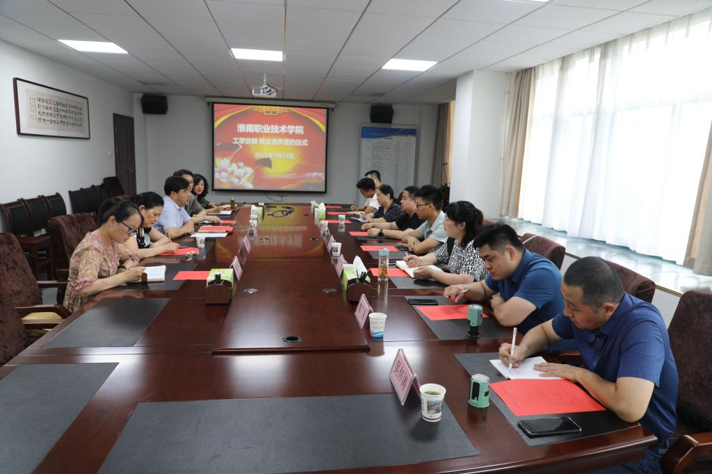 为推动校企深度合作协同育人,深化产教融合,扎实推进现代学徒制,更好地服务地方经济发展,7月15日下午,淮南职业技术学院与韩大建设有限公司、合肥慧途地理信息测绘有限公司、安徽达坤工程项目管理有限公司、安徽诚大建设项目管理有限公司、半缘装饰设计公司、坤隆国际装饰设计工程公司、九正装饰工程公司和格尚装饰设计工程公司等八家公司签订合作协议。淮南职业技术学院副校长胡道成、工程管理学院党政负责人以及校企合作中心相关人员出席了会议。